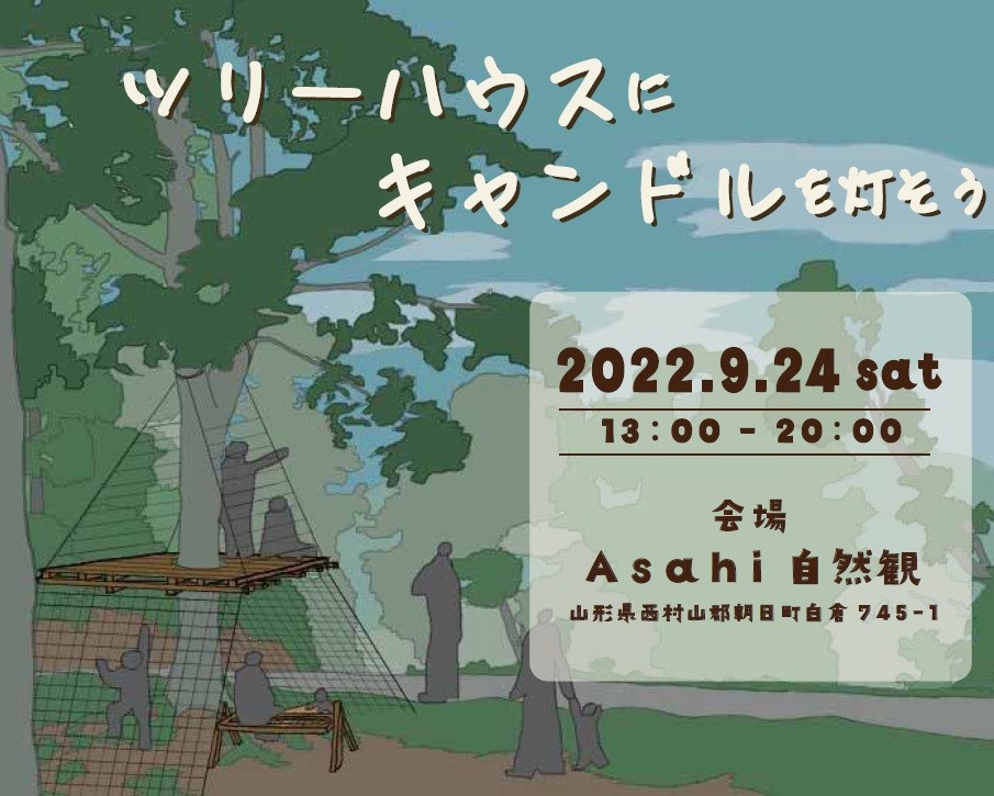 期日 9月24日(土) 場所 Asahi自然観 13:00~15:00 みつろうキャンドル作り体験 第1部 15:30~17:30 みつろうキャンドル作り体験 第2部 18:00~20:00 キャンドル点灯式 ☆みつろうキャンドル作り体験 ハチ蜜の森キャンドルのみつろうを使ってキャンドルを作ります。 ねんどのように好きな形を作ることができます。東北芸術工科大学の学生が作り方を教えます。 ☆キャンドル点灯式 作っていただいたキャンドルをツリーハウスに飾り、火を灯します。こちらの参加は無料で、人数制限もありません。ぜひ気軽に見に来てください。 詳しい内容はこちらにて↓ ツリーハウスにキャンドルを灯そう