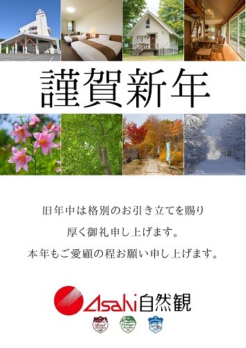 新年明けましておめでとうございます。 旧年中は格別のお引き立てを賜り厚く御礼申し上げます。 本年も変わらぬご愛顧を賜りますようお願いいたします。 平成三十一年 元旦 Asahi自然観