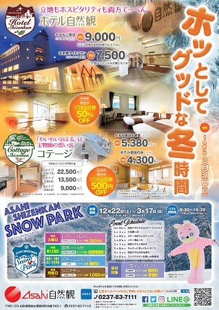 スノーパークもOPENし、冬本番となりました。 ホテル、コテージの宿泊プランをご案内させていただきます。 ホテルに泊まってゆったり寛ぐもよし、コテージに泊まって、ご家族や仲間とワイワイ楽しむもよし。 スノーパークはお得なサービスデーも充実。 ご宿泊特典のリフト券割引もぜひご利用ください。